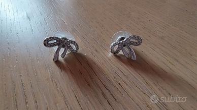 Eleganti orecchini Swarovski con brillantini a forma di fiocco. Usati mediamente, in ottime condizioni, manca un brillantino (vedere foto).