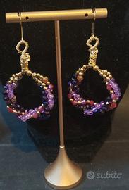 orecchini fatti con tre fili attorcigliati biconi , fatti a mano, pezzo unico