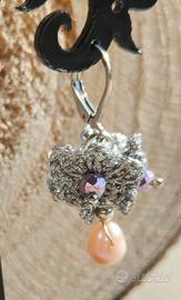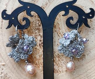 Orecchini fatti a mano con uncinetto e perline. Filato in argento, perline lilla e perle di fiume. Monachella in acciaio. Guarda il mio profilo per altri articoli di questo genere!