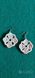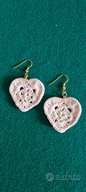 Orecchini lavorati a mano all'uncinetto a forma di cuore o quadrifoglio, colore beige, fermagli nichel free