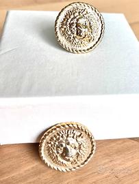 Orecchini a clip in oro vintage di GIANNI VERSACE Profumi con testa di leone romano.