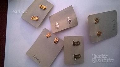 Vendo orecchini vintage anni 60 a clip varie forme, colori e materiali anche grandi quantità. Nelle 3 foto si vedono tutti i modelli di orecchini che possiedo e che vendo a 10 € per ciascun gruppo di 10. Lorenzo