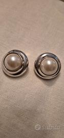 orecchini vintage perla sintetica centrale a clip con profili acciaio. tenuti benissimo. molto eleganti