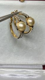Cerchietti anni 80 in lega di metallo placcato oro, con perla di Majorca e zirconi sintetici. Diametro 35 mm, peso complessivo 18 g (9 g cad.) in buono stato, no segni di usura, placcatura conservata.