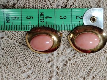 Bellissimi orecchini vintage autentico in argento 800 bagnato in oro con cabochon di corallo rosa naturale