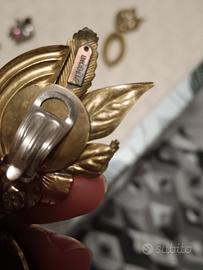 Rari Orecchini vintage, alta bigiotteria firmata Briglia, a clip in stile Art Déco, foglie in ottone, strass floreali. Marchiatura mediante punzonatura (vedi foto)