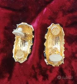 Orecchini vintage anni 60 con clip e con rombi bianchi e neri con rifiniture dorate.