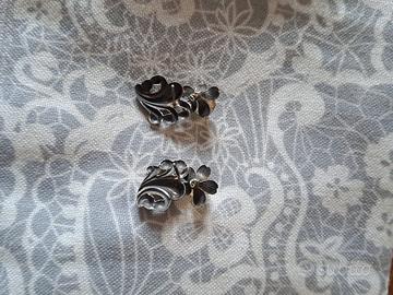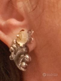 Ereditati. In argentone e vetro giallo paglierino. Condizioni quasi perfette, se si esclude l'assenza di un fermaorecchino, del resto, facilmente sostituibile.