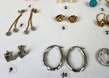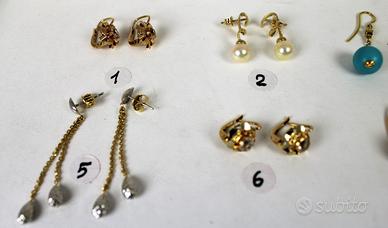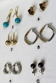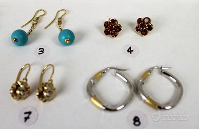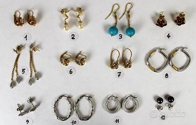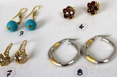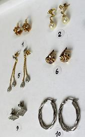 Serie di coppie orecchini vintage in oro 750 giallo e/o bianco, con pietre vere e originali e con