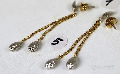 PR698 (Prima serie) Serie di coppie orecchini vintage in oro 750 giallo e/o bianco, con pietre vere e originali e con dimensioni come da elenco sottocitato. Tutti marchiati 18K o 750 e in ottime condizioni. Tutte le coppie di orecchini vengono venduti singolarmente allo stesso prezzo di 350 Euro cadauno indistintamente. Italia - Valenza, Vicenza, Arezzo. 1940 / 1980 Tipo oro - Pietre - Altezza max. in cm. 1) Non più disponibile. 2) Non più disponibile 3) Non più disponibile 4) oro giallo - Granate - 1,2 5) Non più disponibile 6) Non più disponibile 7) Non più disponibile. 8) oro bianco e giallo - no pietre - 2,9 9) oro bianco - Zirconi - 1,1 10) oro bianco - no pietre - 2,9 11) oro bianco - no pietre - 2,0 12) oro bianco - perle di mare brune - 0,7 Spedizione assicurata e/o raccomandata tracciabile con costo da concordare. Per cortesia contattatemi solo se realmente intenzionati. Non chiedetemi se disponibile. Gli annunci venduti, vengono rimossi immediatamente. Questo é un negozio on-line a prezzi fissi. Sono a disposizione al