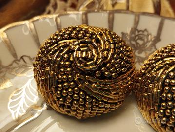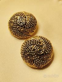 Realizzati in metallo dorato, presentano chiusura a clip; dimensioni importanti, ben 4cm di diametro.