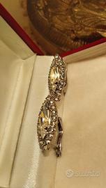 Realizzati in metallo argentato e strass, si presentano in un elegantissimo modello a figaro, con pratica e sicura chiusura "a monachella".