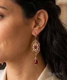 Orecchini stile vintage bohemien in acciaio con perline e strass brillanti nuovi per donna con lobo forato chiusura a monachella accessorio elegante