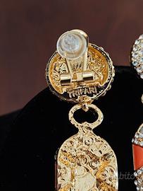 orecchini vintage in acciaio placcati oro con motivi a tartaruga e pietre incastonate in madreperla per donna con lobo forato firmati Trifari accessorio elegante e particolare