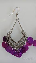 Orecchini colore viola per danza del ventre, usati poche volte. Lato frontale perfetti, lato posteriore la lavorazione è meno curata, acquistati così.