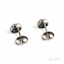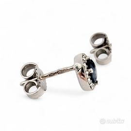 Orecchini con zaffiri ovali 1,05 ct contornati da diamanti 0,28 ct in Oro Bianco 18kt (750) – 2,30 gr circa