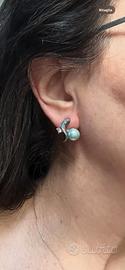 Vendo orecchini di bigiotteria in metallo, zirconi e perla celeste. Usati come nuovi. No nikel.
