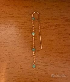Orecchino singolo ad ago con bacchetta, catena e quattro pietre di Smeraldo di 3 mm di diametro, realizzato in oro rosa 18 carati.