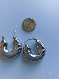 orecchino in acciaio inossidabile 316L. orecchino di tendenza, cerchio bombato con chiusura a scattino. Leggerissimo. È compreso il suo sacchettino in organza