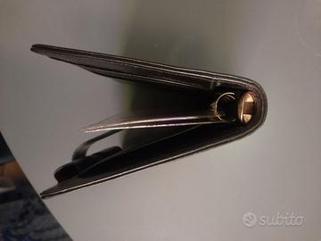 Organizer in pelle di vitello nero piccolo, formato 4 scomparti per carte di credito + scomparto extra. Dimensioni 12 x 14 cm