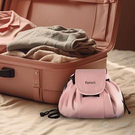 ACCESSO IN UN UNICO PASSAGGIO: la nostra borsa per il trucco si apre piatta e si ripiega in un istante con un cordoncino facile da tirare, garantendo un accesso facile e veloce a tutti i tuoi elementi essenziali di bellezza contemporaneamente. Ideale per le persone impegnate in movimento.