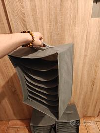 Gli organizzatori sono fatti in tessuto e sulla parte esterna sono rigidi così che possa essere impilati uno sopra l'altro.