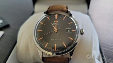 Vendo stupendo Orient Bambino da 42mm, l'orologio è perfettamente funzionante, presenta un leggerissimo graffio sul vetro in corrispondenza della corona visibile praticamene solo in foto.