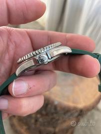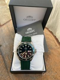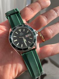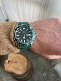 Vendo Orient kamasu mako III verde, lievi graffi sulla ghiera per il resto perfetto, tiene il tempo benissimo completo di scatola e libretto. Senza bracciale originale vendo con questo presente in foto. Disponibile anche con scambio a mano.