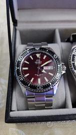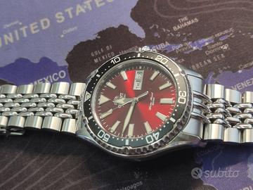 Nuovo!!! Diver Orient Kamasu automatico, vetro zaffiro e quadrante con lavorazione soleil rosso rubino, doppio bracciale originale e strapcode