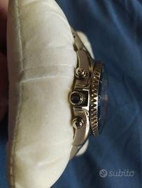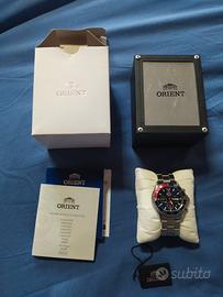 Vendo splendido Orient Mako Solar Chronograph nella colorazione Pepsi Caratteristiche principali: Movimento: Calibro Orient Epson VS752 a carica solare (autonomia fino a 6 mesi con carica completa). Vetro: Zaffiro antigraffio Cassa: Acciaio inossidabile da 42.8 mm. Impermeabilità: Diver 200 metri (20 Bar) con corona e fondo serrati a vite. Funzioni: Cronografo a 1/5 di secondo, datario a ore 4 e indicatore 24 ore. Cinturino: Bracciale originale in acciaio con chiusura di sicurezza