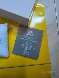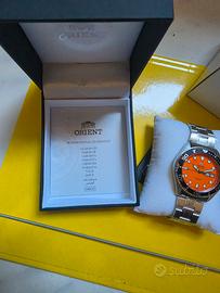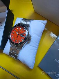 aratteristiche: Cassa in acciaio inossidabile Bracciale in acciaio inossidabile Movimento automatico Cristallo minerale Quadrante arancione Lancette e pennarelli luminosi Visualizzazione del aiorno e della data Lunetta girevole unidirezionale Chiusura pieqhevole Resistenza all'acqua 200M Diametro cassa approssimativo: 41,5mm Spessore case approssimativo: 12,5 millimetri Rimango a disposizione per delucidazioni