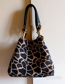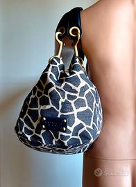 LEGGERE TUTTO IL MIO ANNUNCIO ! VEDI ALTRI MIEI ANNUNCI ! Deliziosa borsa, originale TOSCA BLU. Ho acquistato borsa a Milano, c/o omonimo showroom in Via Montenapoleone. Pagata E 240. Mai usata. Perfetta. Ideale anche come regalo. In resistente tessuto blu e beige, attraversato da filamento dorato, con manici in pelle blu e ganci dorati satinati. Modello molto sobrio e raffinato. Borsa, essendo prevalentemente in tessuto, assume forme differenti, a seconda del verso che si conferisce al medesimo. Borsa misura: Alta 40 cm (con manici) Alta 22 cm (senza manici) Larga 44 cm Profonda 19 cm Per design, identica davanti e dietro. Su un lato, figura vistosa targhetta in pelle blu, con inciso logo Tosca Blu. Borsa, a seconda di come si decida di indossare, assume design trapezoidale, o a sacchetto. Nella parte superiore si chiude internamente con bottone a clips a scomparsa. Nella parte superiore posteriore e anteriore della borsa, dai bordi laterali, partono due fasce di pelle blu e in esse sono attaccati 2 anelli dorati satinati. Da questi anelli dorati satinati, partono i manici in pelle blu, mediante ganci dorati satinati di 9,5 cm, i quali a loro volta si agganciano ai manici in pelle blu, che iniziano tramite 2 anelli dorati satinati. I 2 ganci dorati satinati, si possono anche eliminare, essendo estraibili. Se eliminati (o lasciati, ma senza manici), si può aggiungere cinghia per indossare borsa anche a tracolla. Borsa è indossabile: a mano/braccio/spalla/tracolla. Manici in pelle blu, sono molto comodi e resistenti. Per tipo di pellame morbidissimo e design, manici si poggiano su spalla in modo carezzevole. Internamente borsa è foderata in tessuto gros grain, in splendido color blu cobalto. Fodera interna è immacolata. Internamente borsa, mostra cerniera di 17,5 cm. Cerniera chiude ampia sacca, usabile per riporre ulteriore roba e sotto figura logo Tosca Blu. Borsa possiede altri due scomparti, bordati in pelle blu. Leggerissima da vuota.