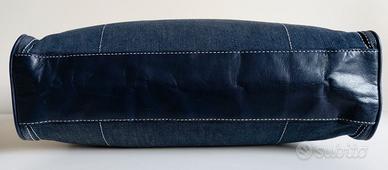 LEGGERE TUTTO IL MIO ANNUNCIO ! VEDI ALTRI MIEI ANNUNCI ! Originale ARMANI JEANS, borsa in jeans e pelle blu. Ho acquistato borsa a Forte dei Marmi, c/o rinomato showroom. Pagata E 270. Usata 1 volta. Perfetta. In morbido jeans blu e vera pelle blu. Indossabile: a mano/braccio/spalla. Borsa misura: Alta 46 cm (con manici) Alta 30 cm (senza manici) Larga 40 cm Profonda 8 cm Jeans ha una nuance stupenda e consente uso ad oltranza della borsa. Borsa ha design molto sobrio e glamour. Per modello è identica davanti e dietro. A forma rettangolare. Con doppie e parallele cuciture bianche verticali a lati della parte anteriore e posteriore e con cuciture singole bianche verticali più centrali nella parte anteriore e posteriore. Unica differenza è che sulla parte anteriore, nella parte centrale figura grande logo bianco di Armani Jeans. La particolarità di questa borsa, è data senza dubbio da meravigliosa qualità e colore del jeans. Inoltre tessuto in jeans è stato cucito in modo sartoriale, la qual cosa fa si che borsa abbia struttura perfetta e molto raffinata. Alla base della borsa, vi è morbida pelle blu. I lati della borsa sono larghi 12 cm e sono adornati da bordatura in pelle blu, che rende più resistente accessorio. Nella parte superiore della borsa, da spigolo a spigolo ci sono delle doppie strisce di tessuto in jeans 16,5 cm x 2,5 cm, le quali consentono di indossare accessorio nella sua massima estensione, oppure restringendolo, grazie a 2 bottoni metallici a clips, posti ai lati su parte anteriore. I due manici, iniziano con 2 fasce piatte larghe 4 cm, per poi diventare tubolari e rigidi. Nella parte superiore, si chiude con bottone ad incastro interno. Fodera è nera e perfetta. Borsa internamente ha fascia in pelle blu, ad interno della quale vi è cerniera di 17 cm, che consente di accedere a sacca per riporre qualcosa. Dentro, sotto cerniera centrale, mostra targhetta in pelle blu, sulla quale è inciso logo Armani Jeans. Molto capiente.