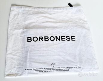 Nella parte centrale della borsa, compare una grande targhetta in pelle nera, con la scritta Borbonese.