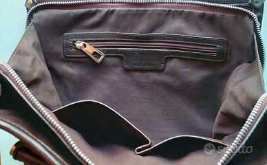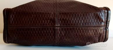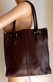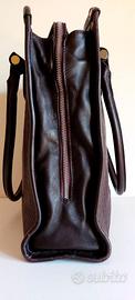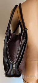 LEGGERE TUTTO IL MIO ANNUNCIO ! VEDI ALTRI MIEI ANNUNCI ! Raffinata borsa, originale DESIREE LUPI. Borse artigianali Desiree Lupi, riprendono storia di famiglia degli anni ’70. Borse dedicate alla Donna: quella urban chic, sportiva, viaggiatrice, lady business, fashionista, ribelle, semplice e sofisticata. Nel laboratorio nascono varie creazioni di pregiata pelletteria, da prima idea di stile, a precisione del taglio e cucitura, a tintura ed a ultimo tocco di rifinitura, il tutto realizzato rigorosamente a mano col supporto dell’innovazione tecnologica. Tutto questo crea il prezioso ed esclusivo valore che solo un oggetto fatto a mano, con amore, possiede. Idea di successo che subito conquista interesse del mercato italiano ed estero. Borsa acquistata a Forte dei Marmi, c/o rinomato showroom. Pagata E 300. Usata solo 1 volta. Perfetta dentro e fuori. In morbidissima pelle di vacchetta, color cioccolato, lavorata a disegnini ovali sporgenti. Design molto sobrio e glamour. Borsa misura: Alta 54 cm (con manici) Alta 34 cm (senza manici) Larga 31,5 cm Profonda 11 cm Borsa è identica davanti e dietro. A forma rettangolare. Parte superiore centrale della borsa si chiude tramite due zip, che fatti scorrere fino a base dei rispettivi lati, ampliano grandezza della borsa, tramite tessuto marrone che si apre a V. Borsa ha cucitura verticale centrale. Su lati e parte superiore ha bordatura marrone in pelle di 1 cm, che rende accessorio molto più resistente. I 4 angoli superiori sono fissati da cerchietto metallico argentato. Indossabile: a spalla/mano/braccio. Manici tubolari in pelle marrone, larghi 1,5 cm, molto comodi e resistenti. Internamente fodera perfetta è color cioccolato. Borsa internamente, per aprire e chiudere ampia sacca, ha cerniera di 20 cm, sotto quale figura targhetta in pelle marrone, con inciso Desiree Lupi e 2 taschini bordati in pelle marrone. A lati dello scomparto centrale, ci sono altri 2 scomparti ugualmente profondi e larghi.