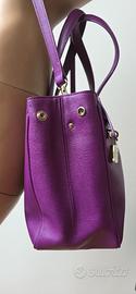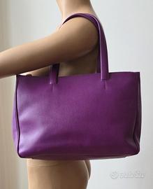 LEGGERE TUTTO IL MIO ANNUNCIO ! VEDI ALTRI MIEI ANNUNCI ! Raffinata borsa, originale FURLA. Ho acquistato borsa a Milano, c/o omonimo showroom in Duomo. Pagata E 590. Mai usata. Perfetta. Alla base sottostante, ha segnetto invisibile, provocato da recente trasloco (vedere foto allegata). In vera pelle viola saffiano. Design molto sobrio e raffinato. Borsa misura: Alta 40 cm (con manici) Alta 23 cm (senza manici) Larga 33 cm Profonda base 13 cm Borsa ha forma rettangolare, identica davanti e dietro. Ai lati della borsa, sulla parte superiore, figurano per ciascun lato i due estremi di un bottone metallico. Volendo la borsa può essere indossata al massimo della sua capienza, oppure con bottoni laterali chiusi, che regalano una dimensione più ridotta. Unica differenza è che su parte anteriore superiore, al centro figura il logo Furla. E sul lato una deliziosa barretta metallica dorata con incisa la F di Furla, attaccata ad un gancino, alla quale base metallica dorata è riportato il logo Furla. Indossabile: a spalla/mano/braccio/tracolla Vista presenza di 2 cerchi metallici dorati, nella parte superiore interna, borsa si può usare anche a tracolla, aggiungendoci cinghia. La cinghia è lunga 116 cm e larga 1,5 cm. Su parti superiori della borsa, partono due manici. Manici sono larghi 2 cm. Manici sono molto comodi all’indosso. Borsa ha 3 scomparti interni. Uno grande centrale e altri due, uno per lato esterno all’accessorio, chiudibili con cerniera. Scomparto centrale è largo e profondo come la borsa e si chiude tramite un bottone automatico. I due scomparti laterali, larghi e profondi quanto tutta la borsa, si chiudono mediante una cerniera. Una cerniera evidenzia una barretta di metallo dorato con inciso il logo Furla e altra cerniera evidenzia una striscia in pelle dello stesso colore della borsa. Internamente fodera è in color viola/antracite. Fodera è intonsa. Fodera è tutta logata Furla. Dentro borsa, scomparto chiudibile con cerniera.