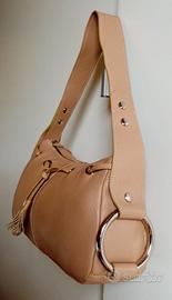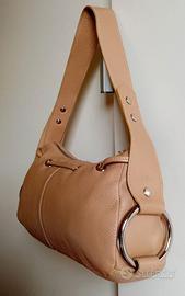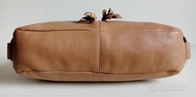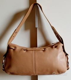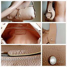 LEGGERE TUTTO IL MIO ANNUNCIO ! VEDI ALTRI MIEI ANNUNCI ! Raffinata borsa, originale HOGAN. Ho acquistato la borsa a Milano, c/o showroom Hogan, in Via Montenapoleone. In morbidissima pelle. Pagata E 490. Usata 1 volta. Perfetta. Borsa misura : Alta (senza manico) 17 cm Alta (con manico) 35 cm Lunga 32 cm Profonda 8 cm Larghezza manico 4 cm Borsa ha forma rettangolare, leggermente arrotondata alla base. Indossabile: a mano/braccio/spalla/tracolla. Volendo ai cerchi argentati, alle basi laterali del manico, si può aggiungere cinghia, per indossare la borsa a tracolla. Identica come design davanti e dietro. Nella parte superiore, la borsa è caratterizzata da cerchietti argentati, nei quali passa una fettuccia in pelle, che nella parte anteriore, confluisce al centro con 2 striscioline pendenti e che mostrano pendagli di pelle. Molto glamour ed elegante. Per pellame, design classico e colore trendy, è un evergreen. Leggerissima e nel contempo molto capiente al suo interno. Manico della borsa, è caratterizzato da una striscia in pelle, che alla base laterale è attaccato a cerchi argentati molto glamour. Sempre sui lati, il manico mostra 3 bottoncini argentati piatti, sui quali è inciso il logo Hogan. Il manico mostra il logo Hogan anche su entrambi i lati, al suo inizio sopra ciascun cerchio argentato. Borsa si chiude esternamente con cerniera di 28 cm, al quale estremo pende una strisciolina di pelle dello stesso colore, per rendere ancora più comoda apertura e chiusura dell'accessorio. Su estremità dello zip, è visibile il logo Hogan. Internamente, borsa ha tessuto impeccabile color cappuccino, con tasca laterale chiusa da cerniera centrale di 21 cm. Sotto cerniera, compare targhetta in pelle dello stesso colore della borsa, sulla quale è inciso il logo Hogan. Ideale per donna che ama distinguersi sempre, ma con classe. Per colore e design, trattasi di borsa che può essere usata in ogni stagione dell'anno.