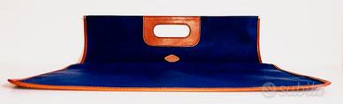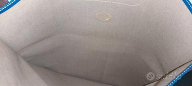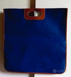LEGGERE TUTTO IL MIO ANNUNCIO ! VEDI ALTRI MIEI ANNUNCI ! Raffinata borsa, originale I SANTI. Ho acquistato la borsa a Forte dei Marmi, c/o rinomato showroom. Pagata E 260. Mai usata. Intonsa. Perfetta. Ideale anche come regalo. In vera pelle, color blu cobalto. Il suo modello viene definito “shopping bag”. A forma rettangolare. Usabile tutta aperta come “shopping bag”, o anche piegata verticalmente in due, come grande “clutch”, di gran moda. Indossabile: a mano. Borsa misura: Alta 45,5 cm Larga 44,5 cm Il pellame blu cobalto è molto resistente e consente un uso ad oltranza della borsa. Design molto sobrio e intramontabile. Identica come design sulla parte anteriore e posteriore. E’ bordata da una fettuccia in pelle color cuoio che la rende più resistente. Nella parte superiore, figurano 2 gancini in metallo dorato, uno per lato, la quale cosa rende più resistente l’accessorio. Sulla parte anteriore e posteriore, nella parte centrale superiore, figurano due rettangoli 14,5 x 8,5 cm in pelle color cuoio, all’interno dei quali compaiono due spazi vuoti ovali 10 x 3,5 cm, nei quali introdurre la mano per indossare la borsa. Sulla parte anteriore, sotto la banda in pelle color cuoio, usata per indossare la borsa, compare l’iconica targhetta in pelle color cuoio, con inciso il logo I Santi. Internamente la fodera in un tessuto rigido, appare garzato. E’ in color corda. La fodera è immacolata. Borsa è ideale per una donna che ama mettere dentro diverse cose. Per griffe, modello, colore, la borsa si rivela essere molto femminile e decisamente raffinata e conferisce alla donna che la indossa una naturale eleganza. Trattasi di una borsa che risulta perfetta, sia con un outfit sportivo che più elegante. Borsa risulta essere molto comoda da indossare e grazie a suo colore e modello, si presta ad essere utilizzabile in qualsiasi stagione dell’anno. Modello molto trendy.