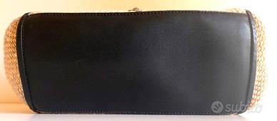 LEGGERE TUTTO IL MIO ANNUNCIO ! VEDI ALTRI MIEI ANNUNCI ! Raffinata borsa, originale ICEBERG. Ho acquistato borsa a Milano, c/o showroom omonimo, in via Manzoni (intersecante Via Montenapoleone e della Spiga). Pagata E 370. In vera pelle blu e corda. Corda è finemente intrecciata e lavorata come se fosse un filato. Borsa è molto particolare ed estremamente sofisticata. Usata 1 volta. Perfetta. Corda è il must del 2025. Indossabile: a mano/braccio/spalla/tracolla. Vista presenza di anelli argentati, si può aggiungere cinghia e indossare borsa anche a tracolla. Borsa misura: Alta 36 cm (con manici) Alta 21 cm (senza manici) Larga 38 cm Profonda 11,5 cm I manici sono tondi rigidi, rivestiti in pelle. Base della borsa è rigida, in pelle blu. Porzione della parte anteriore centrale e della parte posteriore superiore dei manici, sono in pelle blu. Borsa è adornata da duplice bordatura verticale in pelle blu, sia su parte anteriore che posteriore. A lati esterni di queste bordature in pelle blu, iniziano i lati in corda, lavorati con delle pinces orizzontali I manici partono da 2 ovali argentati larghi 3,5 cm, su parte anteriore e posteriore della borsa. Su questi ovali argentati, è inciso logo Iceberg. Borsa su parte anteriore superiore, ha parte in pelle, decorata da impuntura in resistente cotone blu. Su parte anteriore, borsa al centro si chiude con bottone a pressione a scomparsa, che si trova sotto decorazione composta da 2 grandi piastre argentate ovali. Sotto piastra più grande, figura barra rotonda e girevole, sulla quale è inciso logo Iceberg. Sotto compare altra piastra ovale più piccola e al centro figura in verticale grande I, simbolo di Iceberg, e sulla quale I, a sua volta è inciso in verticale logo Iceberg. Aprendo bottone a scomparsa, si accede a interno della borsa. Fodera intonsa, color cappuccino, è interamente logata Iceberg. Dentro ha tasca con cerniera di cm 18. Sotto cerniera centrale, c'è piastra argentata con inciso Iceberg.