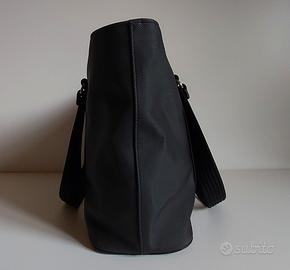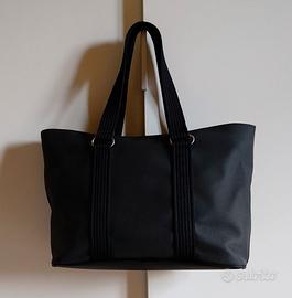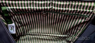 LEGGERE TUTTO IL MIO ANNUNCIO ! VEDI ALTRI MIEI ANNUNCI ! Raffinata borsa, originale LACOSTE. Ho acquistato borsa a Milano, c/o showroom omonimo. Pagata E 220. Mai usata. Perfetta. Ideale come regalo. In pvc nero. Indossabile: a mano/braccio/spalla/tracolla. Vista presenza dei cerchi, si può usare anche a tracolla, aggiungendoci cinghia. Borsa misura: Alta 45 cm (con manici) Alta 26 cm (senza manici) Larga 34,5 cm Profonda 13,5 cm Materiale in pvc, è indistruttibile e consente uso ad oltranza della borsa. Design molto sobrio e intramontabile. Borsa è identica su parte anteriore e posteriore. Unica differenza è che su parte anteriore, figura logo Lacoste su parte destra inferiore. Base della borsa è contornata da cordoncino nero, che la rende ancora più resistente. Borsa ha 2 manici rigidi, la quale fascia è larga 3,2 cm. Fascia dei manici, attraversa la borsa, su due superfici anteriore e posteriore. Tutti i ganci metallici argentati della borsa, sia esternamente che internamente, sono tutti logati Lacoste. Borsa su superficie superiore mostra cerniera per la chiusura, che termina con un cerchio argentato con inciso logo Lacoste. Internamente fodera è a righe strette beige e verde. Fodera è immacolata. Borsa internamente ha tasca con cerniera di cm 27, per aprire e chiudere sacca, nella quale riporre qualcosa. Cerniera, termina con gancino rotondo sul quale è inciso logo Lacoste. Internamente, su un lato, figura targhetta rettangolare in tessuto bianco, con sopra inciso logo Lacoste. Internamente borsa ha altri 2 scomparti: per smartphone/sigarette. Borsa è ideale per donna che ama mettere dentro tante cose. Per modello, tipo di materiale, colore, cerchi argentati, borsa si rivela essere molto femminile e decisamente raffinata e conferisce a donna che la indossa una naturale eleganza. Perfetta, con outfit sportivo e meno casual. Ideale per giornate piovose e nevose, perché non si bagna e non si rovina. Borsa è un modello molto trendy.