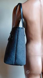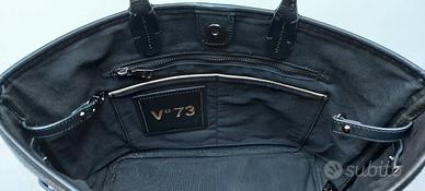 LEGGERE TUTTO IL MIO ANNUNCIO ! VEDI ALTRI MIEI ANNUNCI ! Raffinata borsa, originale V°73. Elisabetta Armellin, designer e pittrice veneziana, dopo importante esperienza più che decennale c/o importanti brand italiani, ha creato marchio V°73, mix di eleganza e originalità. V°73 unisce valori della tradizione artigianale con tecnologie produttive all’avanguardia, promuovendo attenzione costante a moda responsabile, attraverso ricerca e sviluppo di nuovi materiali rispettosi della natura. L’inconfondibile stile italiano, apprezzato in tutto il mondo, la qualità dei prodotti e la ricerca dei materiali di tendenza, sono sicuramente i tratti distintivi di V°73. Il brand V°73 da qualche anno è ritenuto sempre più di tendenza e costoso. Ho acquistato borsa a Forte dei Marmi, c/o rinomato showroom. Pagata E 260. Mai usata. Perfetta. In feltro grigio e pelle nera. Indossabile: a mano/braccio/spalla. Borsa misura: Alta 48 cm (con manici) Alta 26 cm (senza manici) Larga a base superiore 41 cm Larga a base inferiore 31 cm Profonda 15 cm Feltro consente uso ad oltranza della borsa. Design molto sobrio e intramontabile. Per modello è identica davanti e dietro. Davanti, nella parte centrale superiore, su placca quadrata metallica lucida grigia, figura inciso logo V°73. Particolarità di questa borsa, sono senza dubbio scritte nere e molto glamour, che richiamano Via Montenapoleone e strisce in pelle laterali con centrale lucchetto dentro cappuccio in pelle, che richiamano volutamente Birkin di Hermes. A base della borsa, su 2 strisce verticali in pelle, sono fissati 4 piedini quadrati metallici grigi, logati V°73. Piedini resistenti, evitano che borsa si sciupi, posandola su superfici. Ha 2 manici rigidi, larghi 1,2 cm. Ha bottone logato e ad incastro interno, per chiusura superiore. Fodera interna nera è perfetta. Dentro ha 2 cerniere per accedere a 2 sacche e altri 2 scomparti. Su uno di essi, figura quadrato in pelle nera, logato.