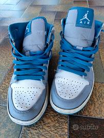 Originali Jordan 1 originali Mid true blue numero 41 ottimo stato, con piccoli difetti come da foto, con scatola originale, consegna in zona metro Battistini o spedizione a carico dell'acquirente. No perditempo