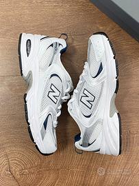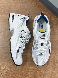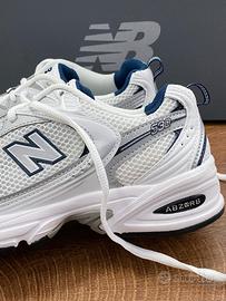 Questo annuncio riguarda le New Balance 530 bianche, argento e blu navy, nuove di zecca, con scatola originale