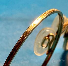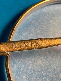 Montatura occhiali da vista Oliver Peoples, modello M-4, autentico Made in Italy, vintage degli anni '90. Raffinata filigrana incisa a mano su tutto il bordo delle lenti, la montatura è solida e la finitura dorata è ancora brillante.