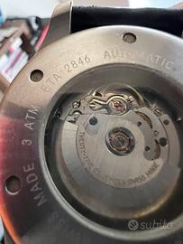 Orologio automatico da collezione , con ore , secondi , giorno e data con cinturino in pelle nera come da foto usato unico proprietario . No perditempo