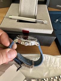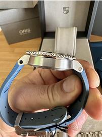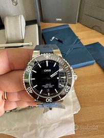 Vendo orologio ORIS AQUIS date 41,5mm referenza n 01 733 7766 4135-07 8 22 05PEB usato ma in eccellenti condizioni e in garanzia ufficiale fino a ottobre 2027. L orologio ha il quadrante blu con movimento automatico 733-1 con riserva di carica di 41 ore, impermeabile fino a 300metri. L orologio viene venduto con il suo bracciale in acciaio ( usato pochissimo) e cinturino in caucciù originale e chiave ORIS per sostituzione cinturino regolarmente aquistati dal sito ufficiale. Vendo per initilizzo a 1450 poco trattabili + 50 spedizione. Per ulteriori info contattatemi.