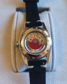 Vendo orologio perfettamente funzionante con movimento automatico calibro oris 733 con 28.800ah, la cassa misura 37mm esclusa corona logata, quadrante bianco, vetro zaffiro, ghiera girevole con Inserto in ceramica bianco, indici e lancette a bastone, cinturino in pelle originale logato con chiusura deployante, completo di scatola e documenti.