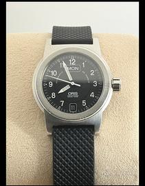 Vendo orologio unisex ma circonferenza polso cinturino piccola. marca Oris made in swiss riferimento 7500 cassa in acciaio inossidabile oblò in vetro minerale. 5 bar resistenza all acqua. Day date monta un calibro 635 con riserva di carica di 38 h . Cinturino originale in cauccù con chiusura in acciaio. Ottime condizioni lo vendo insieme a portaorologio da viaggio GENERICO.