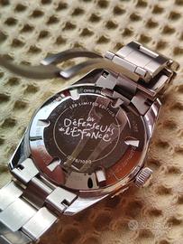 Oris Divers Sixty-Five “LFP Limited Edition” – N. 00276/1000 – Set completo – Condizioni eccellenti In vendita dalla mia collezione privata uno splendido Oris Divers Sixty-Five Limited Edition LFP, numerato individualmente 00276/1000. Questo modello raro e altamente da collezione celebra la partnership di Oris con il calcio professionistico francese e combina l'estetica vintage degli orologi subacquei con elementi di design sportivo e distintivo. L'orologio è di seconda mano ma in eccellenti condizioni estetiche e meccaniche. È stato indossato con cura a rotazione, presenta solo minimi segni di utilizzo e funziona perfettamente. Viene fornito con il set completo, inclusi scatola originale, documenti e accessori. Caratteristiche principali e specifiche tecniche * Modello: Oris Divers Sixty-Five LFP Limited Edition * Edizione limitata: 1000 esemplari in tutto il mondo – N. 00276/1000 * Cassa: acciaio inossidabile 38 mm * Spessore: circa 12 mm * Vetro: Vetro zaffiro bombato con trattamento antiriflesso interno * Fondello: Fondello inciso con emblema LFP e numerazione individuale * Movimento: Calibro Oris 733 (basato su Sellita SW200-1) * Riserva di carica: ~38 ore * Funzioni: Ore, minuti, secondi centrali, data * Impermeabilità: 100 metri (10 ATM) * Lunetta: Lunetta girevole unidirezionale * Quadrante: Splendido quadrante blu con caratteri e colori speciali dell'edizione LFP * Cinturino/Bracciale: Bracciale in acciaio inossidabile * Luminescenza: Super-LumiNova® su lancette e indici Condizioni * Estetica: Eccellente - solo lievi e superficiali segni di un attento utilizzo * Meccanica: Perfettamente funzionante, mantiene l'ora con precisione * Vetro e lunetta: Puliti, senza scheggiature o graffi profondi * Bracciale: Condizioni eccellenti Questa edizione limitata si distingue per i dettagli unici del quadrante e il suo carattere da collezione.