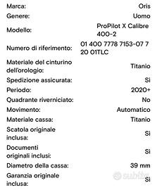 Vendo Oris Propilot x calibro 400 Ancora Pellicolato mai indossato